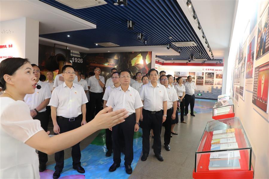 在入黨誓詞展廳,參加活動的黨員干部重溫入黨誓詞。