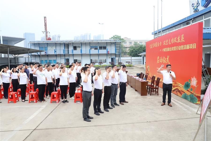 活動啟動儀式上,三方黨組織負責人就攻堅任務作表態(tài)發(fā)言,并共同簽訂了《攻堅任務承諾書》和《廉潔共建承諾書》,明確今后將定期開展聯(lián)合學習、主題黨日活動、志愿服務等活動,打破溝通壁壘,構建“黨建+項目”協(xié)同推進機制,全力以赴推進項目攻堅任務。全體參與黨員共同宣誓,承諾將以高度的責任感和使命感投入到項目建設中。