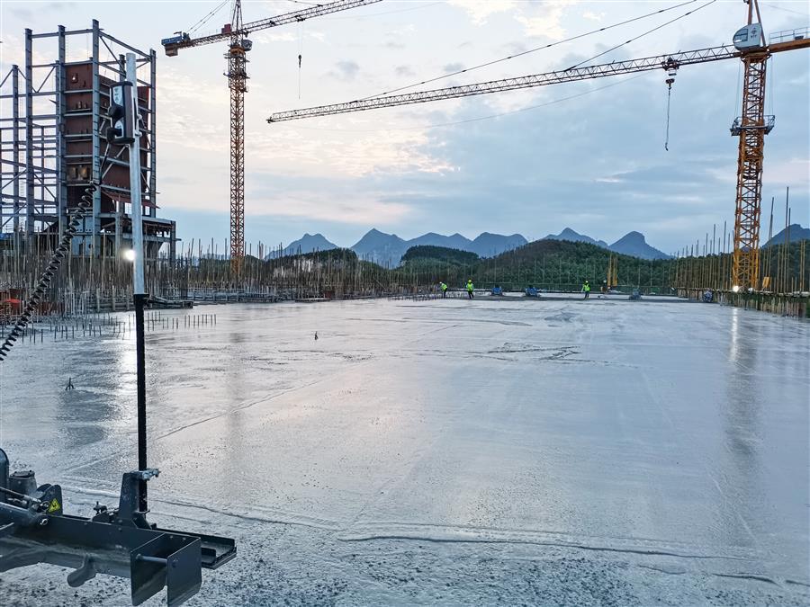 “72小時(shí)澆筑11000平方米!”4月9日凌晨,經(jīng)過(guò)項(xiàng)目部全體人員的連續(xù)奮戰(zhàn)桂華分公司承建的生活垃圾焚燒處理項(xiàng)目完成項(xiàng)目體量最大的8米層卸料大廳樓板地面澆筑作業(yè)。
