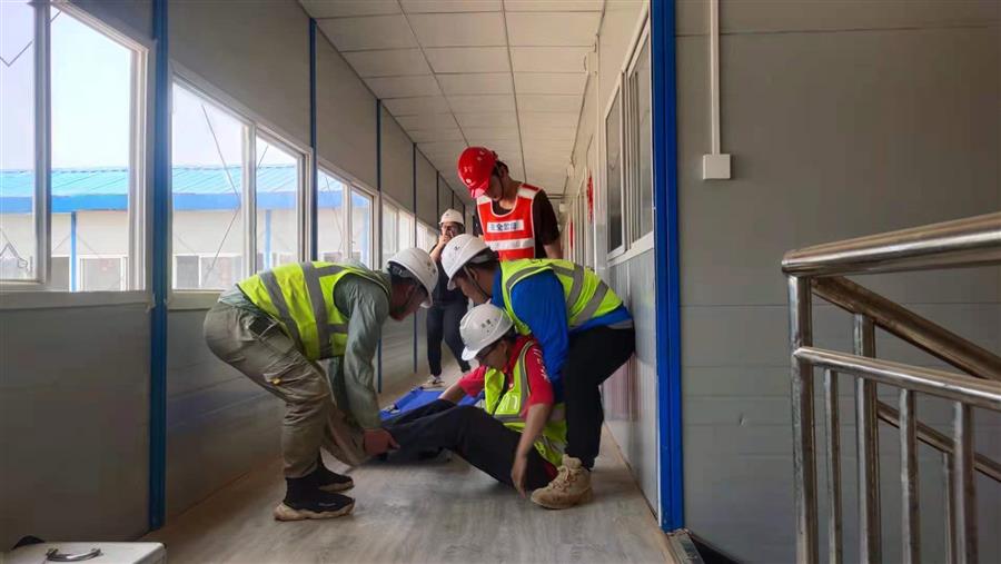 活動(dòng)過程中,分公司經(jīng)理在項(xiàng)目部會(huì)議室向大家講解消防、觸電安全常識(shí)、應(yīng)急救援等相關(guān)知識(shí)點(diǎn),并播放了相關(guān)教學(xué)視頻。項(xiàng)目安全總監(jiān)介紹了滅火器材的使用,并組織進(jìn)行實(shí)地滅火實(shí)物操作演習(xí)。分公司管理人員、項(xiàng)目管理人員和從業(yè)人員分別進(jìn)行了觸電應(yīng)急救援,火災(zāi)人員疏散,滅火器、消防水槍使用演練。