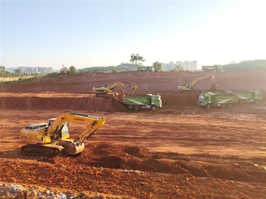 在第七分公司承建的柳江區(qū)新興工業(yè)園柳石路東片區(qū)基礎設施建設項目-土方平整工程(三期)施工現(xiàn)場,項目管理人員和工人用辛勤的汗水為城市建設默默奉獻。