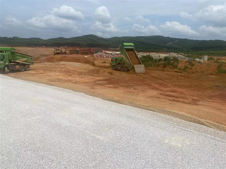 目前,該項目樁號K0+360-K1+200段雨、污水管、級配碎石層完成90%,K1+063橋調平層施工完成,K0+247橋箱梁預制完成,樁基施工完成。