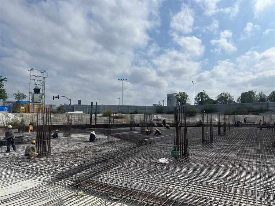 目前,項(xiàng)目塔1區(qū)域完成地下室頂板澆筑;塔2區(qū)域完成防水板鋼筋綁扎;塔3區(qū)域防水板鋼筋完成30%;塔1剩余區(qū)域完成基礎(chǔ)頂-防水板短柱澆筑;其他中庭區(qū)域完成98.77米大開挖。