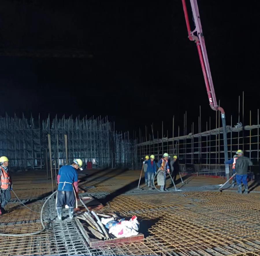 為確保工程快速推進(jìn),項(xiàng)目部實(shí)行兩班制,科學(xué)制定了夜間專項(xiàng)施工方案,倒排工期,規(guī)劃任務(wù)單,明確了各施工點(diǎn)的建設(shè)內(nèi)容、時(shí)間節(jié)點(diǎn)以及相關(guān)責(zé)任人,有序推進(jìn)夜間施工作業(yè)。目前,中試車間一層二次結(jié)構(gòu)砌筑完成;1#、2#生產(chǎn)車間正在搭設(shè)49-57軸模架及進(jìn)行40-45軸剛性地面施工;宿舍樓在進(jìn)行4層梁板砼澆筑和頂板模板、鋼筋施工;倉(cāng)庫(kù)在進(jìn)行2層梁板砼澆筑和2層模架搭設(shè)。累計(jì)完成產(chǎn)值約1.15億元,完成合同造價(jià)的23.5%。