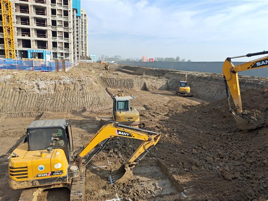 “工程實(shí)際形象進(jìn)度比預(yù)期進(jìn)度目標(biāo)提早了50天!”陽(yáng)光南岸小區(qū)二期建設(shè)項(xiàng)目施工員韋佳樂說道。走進(jìn)項(xiàng)目現(xiàn)場(chǎng),9臺(tái)塔吊、15座爬架、15臺(tái)施工電梯正井然有序地運(yùn)轉(zhuǎn),結(jié)構(gòu)施工、磚墻砌筑、內(nèi)架防護(hù)和女兒墻外架搭設(shè)等同時(shí)施工,齊頭并進(jìn),人機(jī)協(xié)同、施工繁忙。