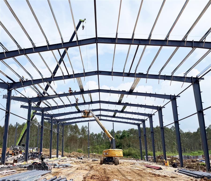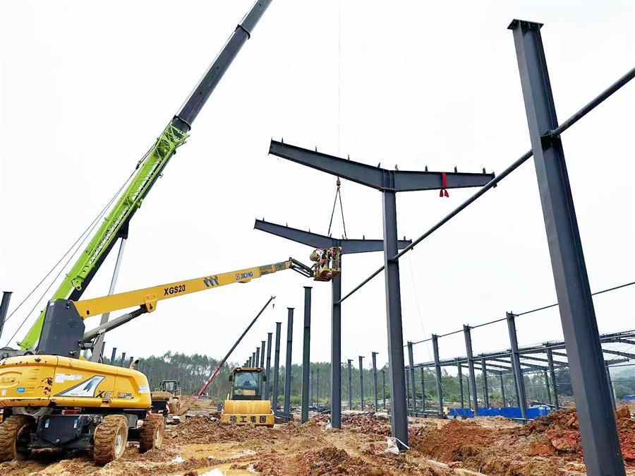 項目開工以來,為加快建設(shè)進(jìn)度,項目部嚴(yán)格按照公司相關(guān)要求進(jìn)行施工管理,克服重重困難,制定科學(xué)的施工組織計劃,由專員監(jiān)督指揮施工。該項目占地面積約2萬平方米,總建筑面積1.2萬平方米,主要建設(shè)一棟鋼架結(jié)構(gòu)標(biāo)準(zhǔn)廠房,配套建設(shè)道路、圍墻、綠化、電氣、消防及給排水等設(shè)施。目前已完成基礎(chǔ)承臺及地腳螺栓的預(yù)埋,鋼結(jié)構(gòu)安裝完成40%,配套建設(shè)施工內(nèi)容完成30%。