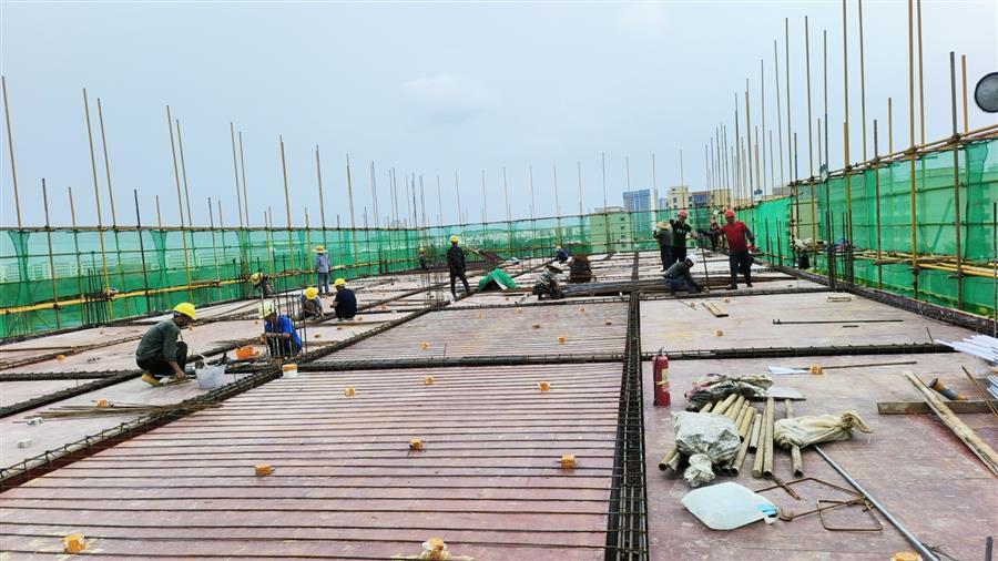 中秋將至,天氣依然炎熱。冶建公司桂海分公司承建的中國移動廣西分公司南寧武鳴區(qū)分公司生產(chǎn)調(diào)度用房工程項目施工現(xiàn)場一派熱火朝天的景象,建設(shè)者們各司其職,切割鋼筋、搬運(yùn)材料、綁扎樓面鋼筋等,全力沖刺工程建設(shè)節(jié)點(diǎn)。