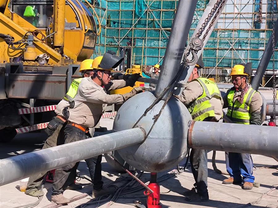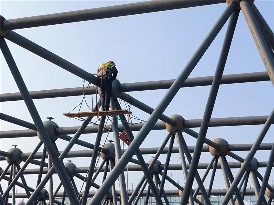 項(xiàng)目總建筑面積4.46萬(wàn)平方米,建設(shè)內(nèi)容為文化會(huì)展中心和英德茶文化博物館(含紅茶研發(fā)中心、檢測(cè)中心和交易中心)等。目前,項(xiàng)目正在進(jìn)行網(wǎng)架拼裝、加焊、焊接囗打磨、鋼球刷漆等工作,鋼結(jié)構(gòu)施工進(jìn)度為65%。