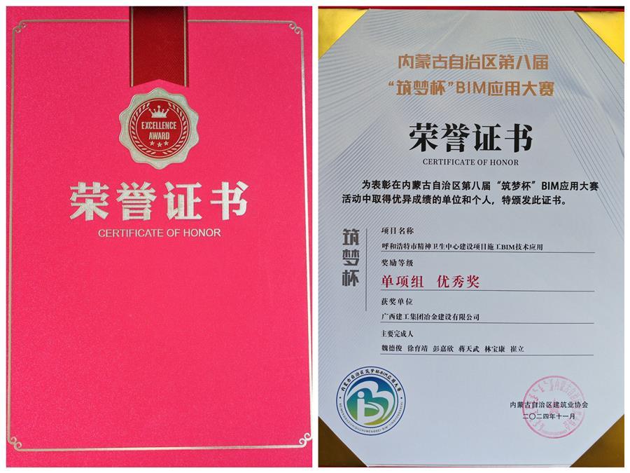 近日,內(nèi)蒙古自治區(qū)建筑業(yè)協(xié)會(huì)公布表彰決定,冶建公司第五分公司承建的呼和浩特市精神衛(wèi)生中心建設(shè)項(xiàng)目工程榮獲內(nèi)蒙古自治區(qū)第八屆“筑夢(mèng)杯”BIM應(yīng)用大賽優(yōu)秀獎(jiǎng)。
