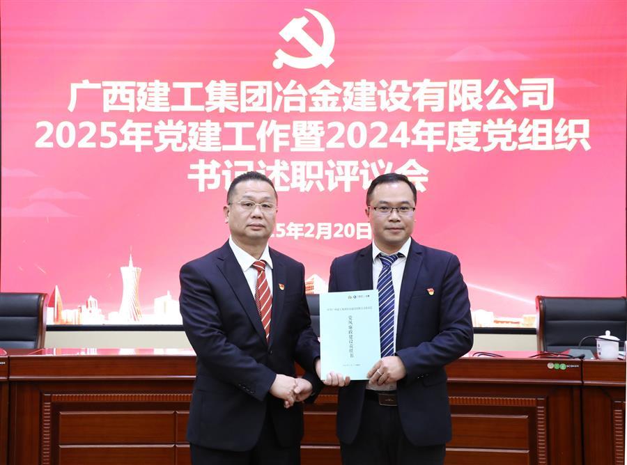 2月20日,冶建公司2025年黨建工作暨2024年度黨組織書記述職評議會議在公司1號樓第二會議室召開。公司黨委書記、董事長覃振華參加并講話,黨委副書記、總經(jīng)理蒙勝益參加,黨委副書記、紀(jì)委書記、工會主席賴海標(biāo)主持。