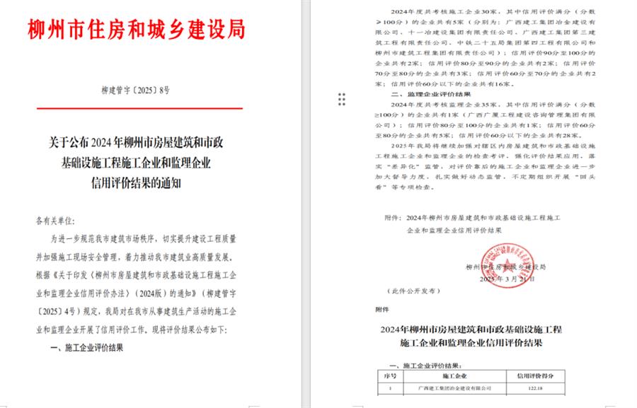冶建位列榜首!2024年度柳州市施工企業(yè)信用評(píng)價(jià)結(jié)果公布
