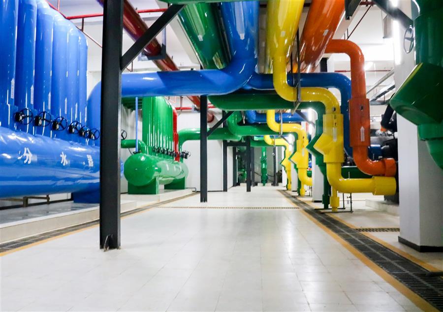 采用非金屬彩色復(fù)合保溫外護(hù)進(jìn)行管道區(qū)分,接口處理平直、美觀。