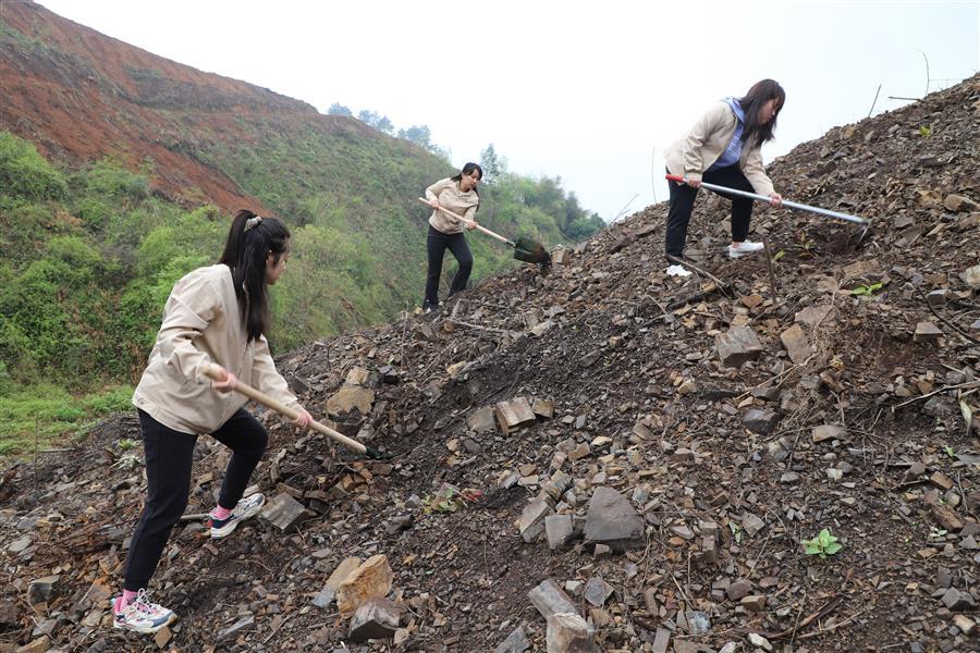 活動(dòng)現(xiàn)場(chǎng),青年志愿者分組分片區(qū)開(kāi)展植樹(shù)活動(dòng)。各小組團(tuán)員青年分工協(xié)作、默契配合,鏟土挖坑、立苗填土,個(gè)個(gè)熱情高漲、干勁十足,活動(dòng)現(xiàn)場(chǎng)氣氛熱烈。經(jīng)過(guò)大家熱火朝天的忙碌,一排排新種樹(shù)苗有序“落根”,山坡上煥發(fā)出盎然生機(jī)。