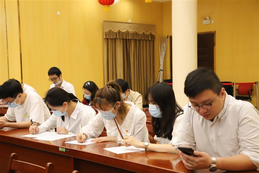 參加獻(xiàn)血的員工正在填寫表格