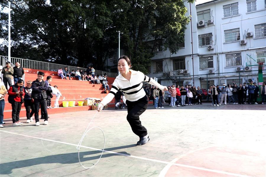 活動現(xiàn)場處處歡聲笑語、熱鬧非凡,一派歡樂祥和的景象。在集體項目團隊滾鐵環(huán)接力賽、單腿跑火車接力賽中,參與比賽的員工配合默契、銜接緊密、奮力爭先,場面激烈,觀眾的掌聲、笑聲、喝彩聲此起彼伏。游園活動還設(shè)置擲壺、飛鏢、滾球入桶、定點投籃、盲人擊鼓、套活雞活鴨等8項個人項目,大家有序排隊積極參與,樂在其中,收獲滿滿,為即將到來的蛇年新春增添了滿滿的喜氣。